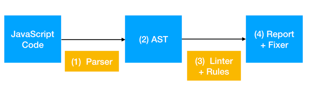 첫째는 코드의 파싱과 AST(Abstract Syntax Tree)를 생성하는 것이고, 둘째는 생성된 AST를 기반으로 코드를 검사하여 규칙 위반을 찾아내는 것입니다.