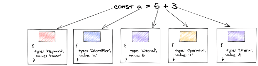 토큰화 과정에서 코드는 어휘 분석 과정에 의해 문자열로 읽히면서 토큰 목록으로 쪼개집니다.