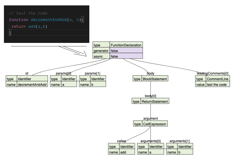 말로는 이해가 잘 안되니 Javascript 구조에 따른 AST의 구조를 JSON 포맷으로 확인해보겠습니다.